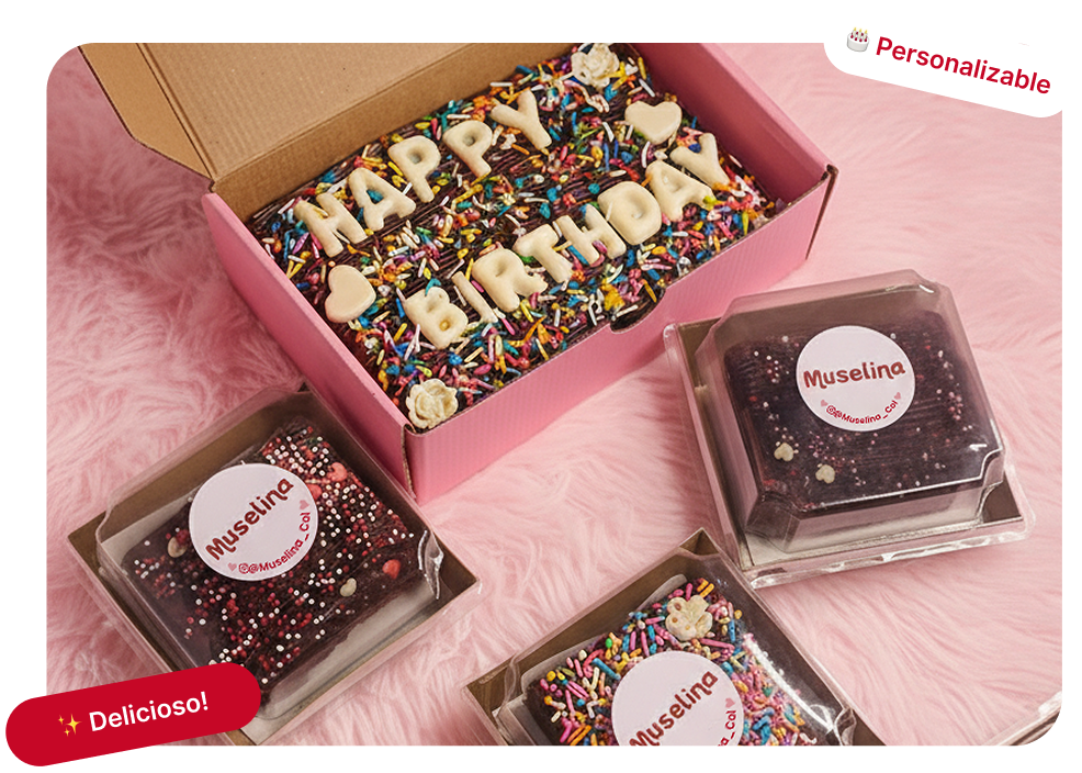 Crea brownies únicos para cualquier ocasión especial. Elige tus sabores, decoraciones y mensajes personalizados.